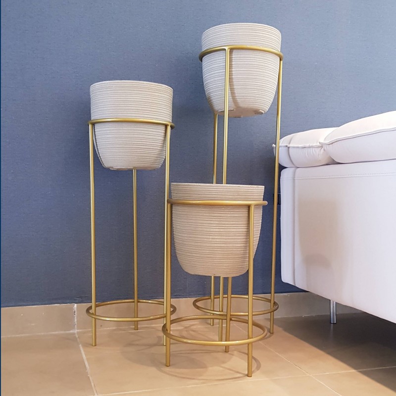 Kit de tres maceteros de hierro acabado gold finish high gloss